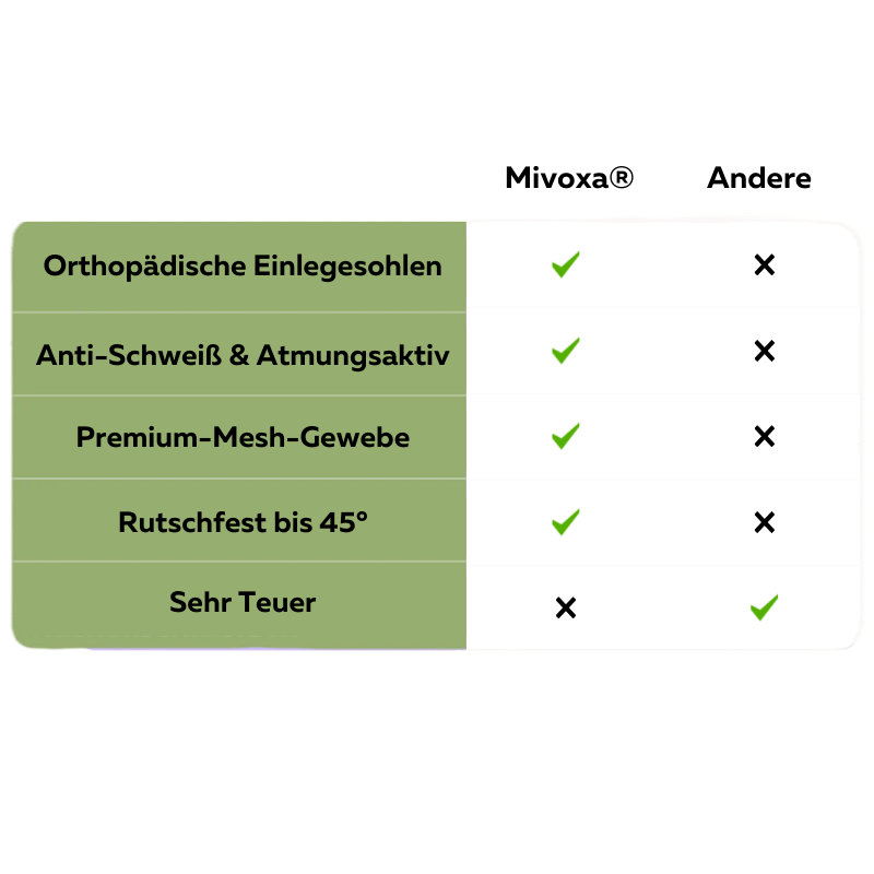 Ja, wir bieten eine MIVOXA®-Zufriedenheitsgarantie. Überzeugen Sie sich selbst von der Qualität unserer Produkte. Sollte der Schuh am Ende doch nicht passen, sind Sie dennoch durch unsere 15 Tage Geld-zurück-Garantie abgesichert.